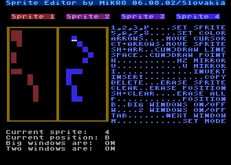 | Sprite Editor 1.2 | 2002/08/06 | Atari XE/XL, 48 kB RAM | Simple tool for sprite editing. Screenshot. | ||